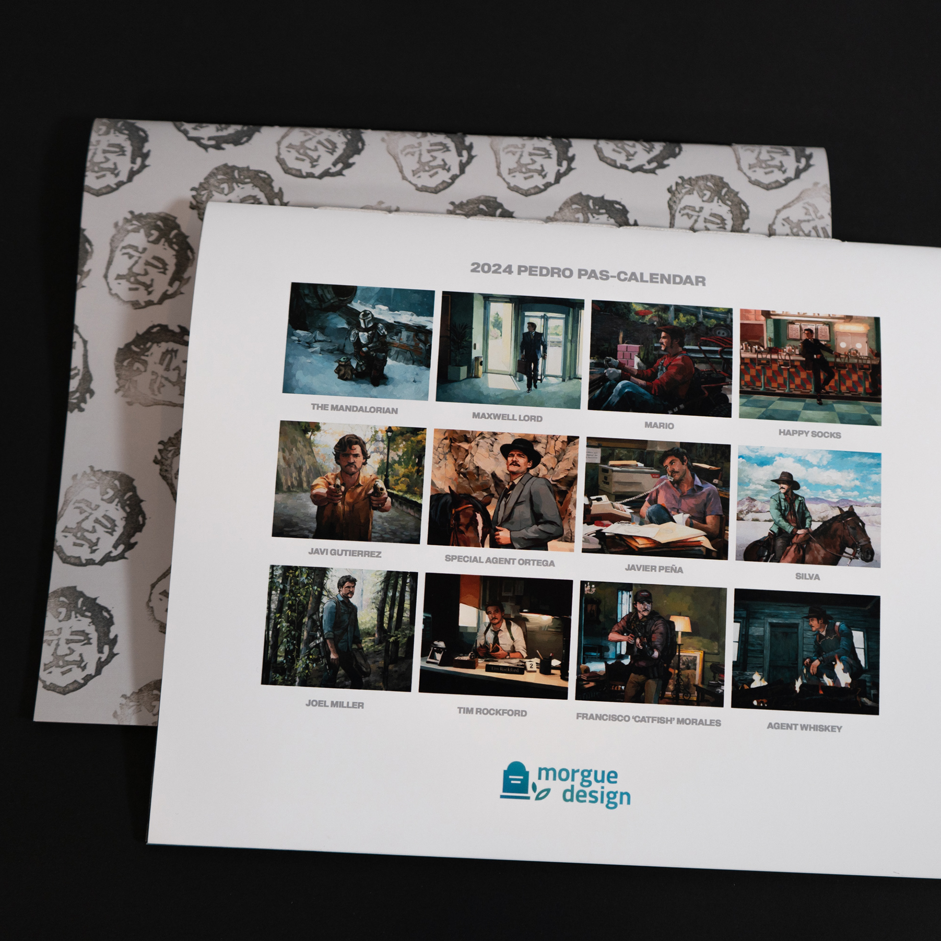 I made a Pedro Pascal-themed art calendar, with 12 intricate illustrations of his most well-known characters. I printed, assembled, and distributed the calendars myself.