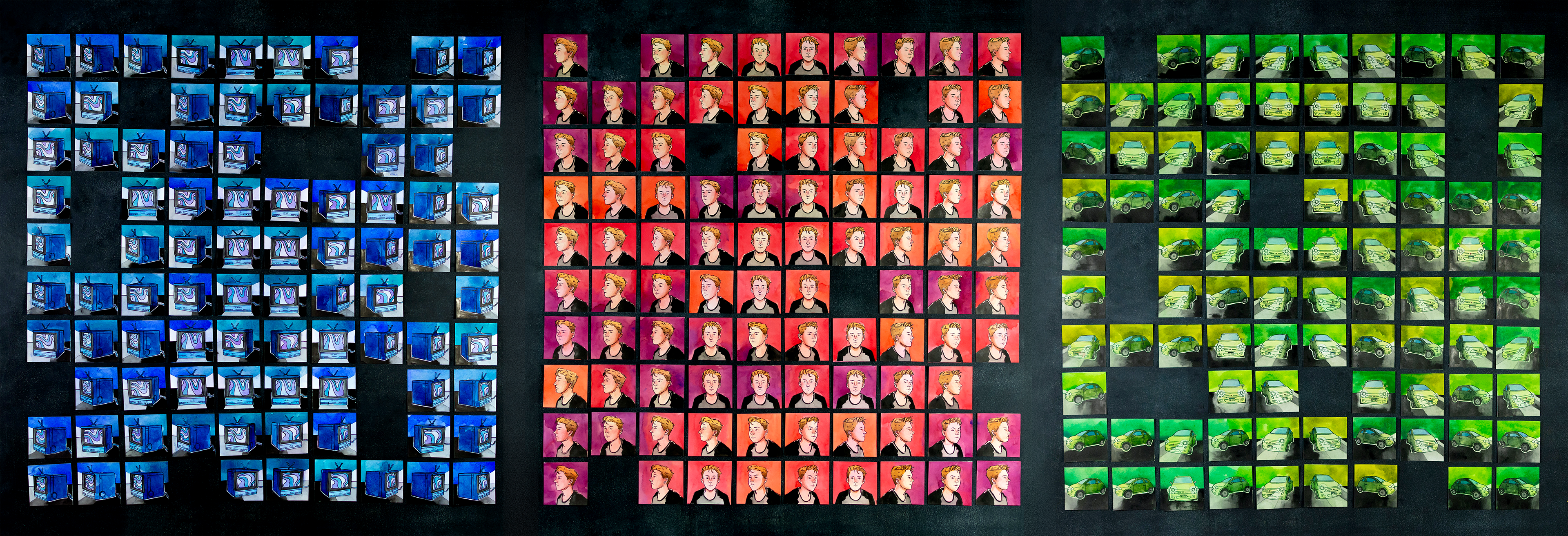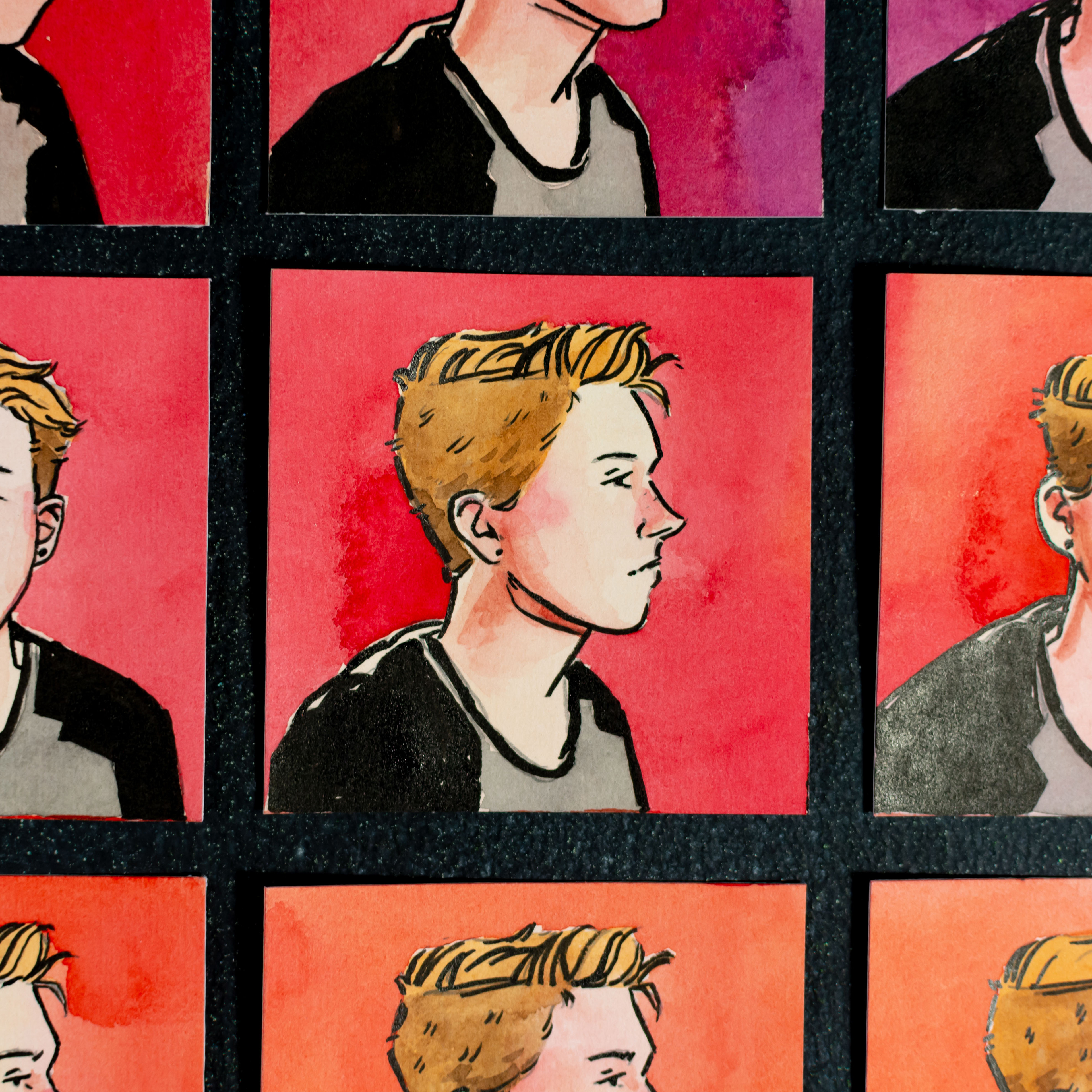 The Self, 2021, Watercolor and sumi ink on paper, 3in. by 3in. each.